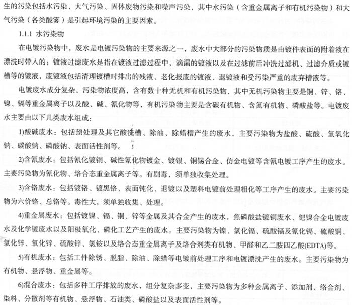 一般的電鍍生產(chǎn)工藝由前處理、電鍍和后處理工藝三部分組成,每個工藝一定程度上都是污染物產(chǎn)生,產(chǎn)